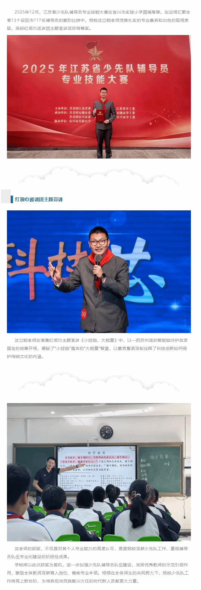 我校沈立能老师在江苏省少先队辅导员专业技能大赛中获得特等奖